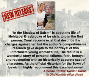 The historical novel, In the Shadow of Salem, is the story of Mehitabel Braybrooke Downing, Lucy Downing’s daughter-in-law. It is available on Amazon.