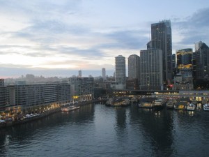 It was early morning when the Explorer of the Seas began to approach Sydney Harbor, the largest natural harbor in the world. We were at the end of a 22 day transpacific cruise to Sydney. I was out on deck at 5:30 and saw the Sydney Opera House and the Harbor Bridge in the distance.