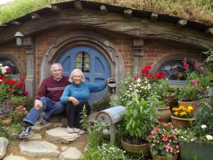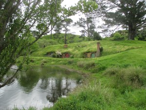 We made a rest stop at a roadside café for coffee and then continued on to Hobbiton and arrived at 1:15. There was time for those who wished to have a lunch in the café, but we chose to peruse the gift shop and bought a number of items such as magnets, pins, a t-shirt, playing cards, etc. I assumed we couldn’t purchase Hobbit souvenirs anywhere else so this was our only chance.