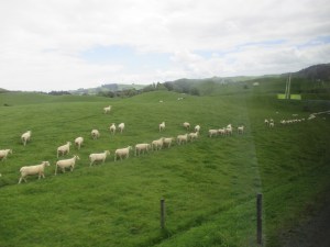 The ride was a rather long one (over two hours), but the bucolic scenery was stunning as we drove past thousands of sheep and cows grazing on the rolling hills of inner New Zealand. There are more sheep than people in New Zealand.