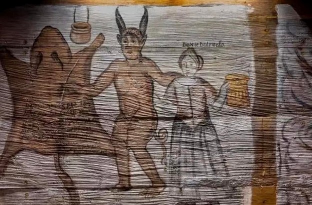 The painting of the devil and his victim is what the church is most known for. The painter was obviously not world-renowned for his talents. Here we see Satan, who looks somewhat like the Easter Bunny, is dragging the innkeeper’s wife to hell. Her sins are listed on a cowhide.