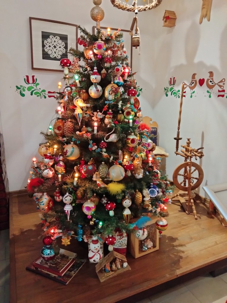 Not far from my grandparents’ town is a lovely Christmas ornament factory and museum in Nowa Deba. It was founded in 2012 by Janusz Biliński, who has produced hand-painted Christmas tree decorations for years. He started collecting exhibits because he did not want the next generations to forget these unique, timeless decorations. Bilinski kept the treasures in the privacy of his home, but they now decorate the museum’s old Polish Christmas tree. The thousands of ornaments displayed at the museum also reflect the treasure produced over the years in this factory. Additional photos are at the end of this article, although many more cases were on display!