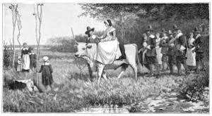 In colonial New England’s well-ordered society, men and women were expected to marry. The desirable average age for marriage was twenty-three for women and twenty-six for men. Puritans agreed it was best to marry a suitable and Godly partner and love would evolve after the commitment. They tended to be more practical and chose someone suitable after they had decided it was time to marry. It is likely many matches were orchestrated by the families to some degree, but Puritans didn’t necessarily believe in the concept of arranged marriages. Social rank and the size of a woman’s dowry were likely very important considerations when choosing a spouse.