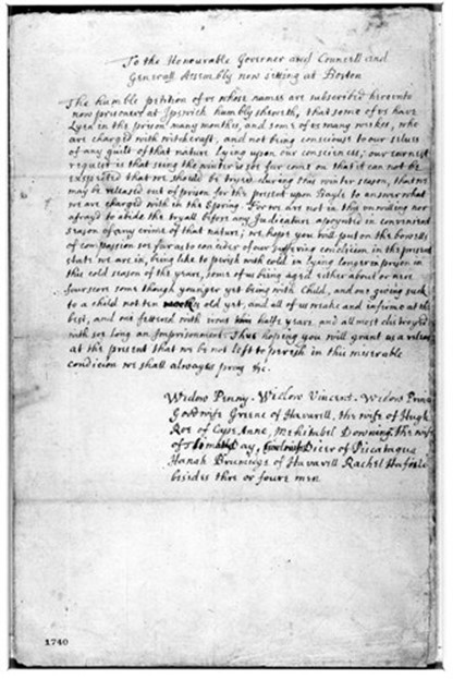Mehitabel made it into many town records during this time period, but her imprisonment in the fall of 1692 put her into history books. While we don’t know anything specific about the charges, Mehitabel Downing’s name appears as one of ten accused women petitioning for release from the Ipswich jail. They were all accused of witchcraft.